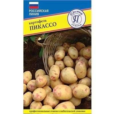 Светло-желтый окрас кожицы картофеля, с розовыми пятнами вокруг его глазок, очевидно, напомнили селекционерам картины Пикассо из «розового периода» его творчества. Мякоть у картофелин имеет классический кремовый или молочно-белый окрас. Крахмал в ней находится на низком уровне – всего 10-12%. Вкус у этой картошки отменный. Она не темнеет при нарезке и не разваривается при варке. Кроме того, картофелины обладают отличной лежкостью и сохраняют свои вкусовые и товарные качества в течение длительного периода времени.Это один из лучших сортов для зимнего хранения. Он не только отлично хранится, но и практически не прорастает за время хранения. Картошка Пикассо обладает хорошей иммунной системой, которая защищает его от самых распространенных заболеваний этой культуры, а именно от: фузариоза; парши; нематоды; вирусов Х и Yn.