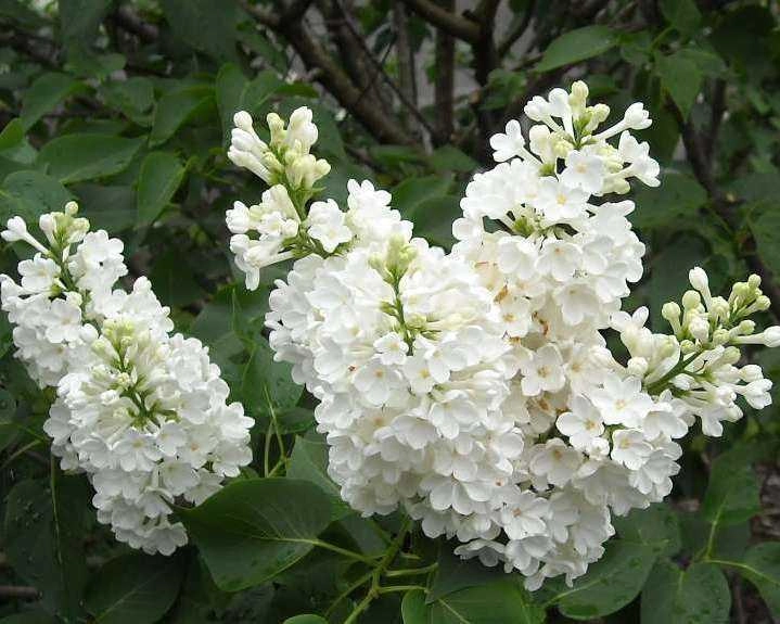 Сирень обыкновенная Мисс Елен Вилмот невероятно сирень. Цветки махровые, снежно-белые, собраны в крупные соцветия. Популярный сорт с обильным цветением. Куст вырастает 1,5-2 м высотой, крона компактная до 2 метров в диаметре. Лист темно-зеленой окраски, крупный. Махровые цветки очень декоративны, белые с нежно-розовой окраской с широкими и загибающимися внутрь лепестками. Соцветия большие, плотные, пирамидальной формы до 25 см длиной.