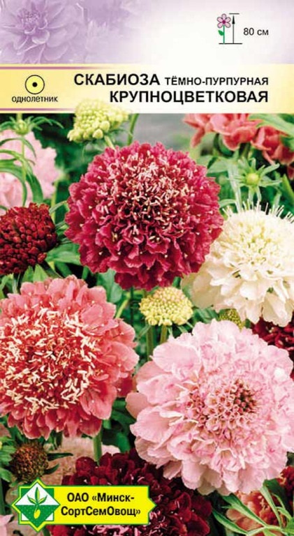 Изящное однолетнее растение высотой около 80 см. Соцветия на длинных прочных цветоносах, головчатой формы, в диаметре до 7 см, белых, розовых, лиловых и красных тонов. Цветет продолжительно и обильно. Используется для цветников и букетов. Семена высевают ранней весной прямо в грунт, но выращивать можно и через рассаду. Хорошо растет на легкой, некислой, среднеувлажненной почве на солнечном месте.