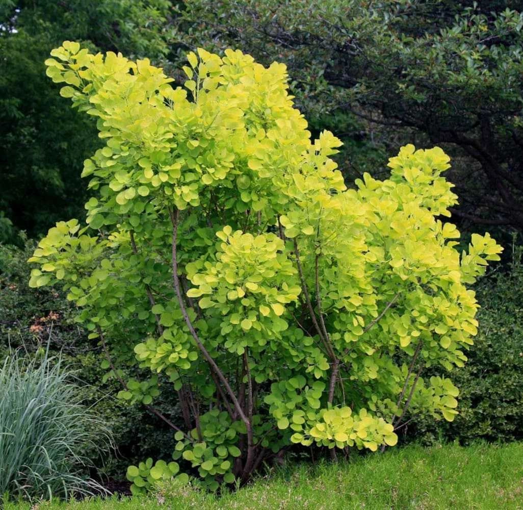 Форма роста: Скумпия кожевенная или обыкновенная Голден Спирит (Cotinus coggygria Golden Spirit) - листопадный кустарник с широко раскидистой кроной, вертикальнорастущий, у старых экземпляров боковые ветви лежат на земле.