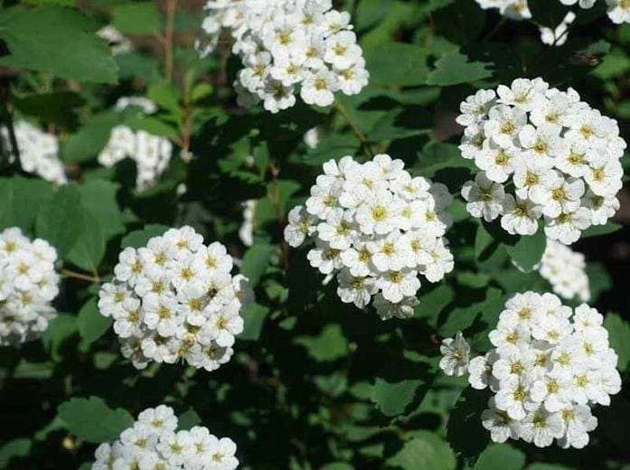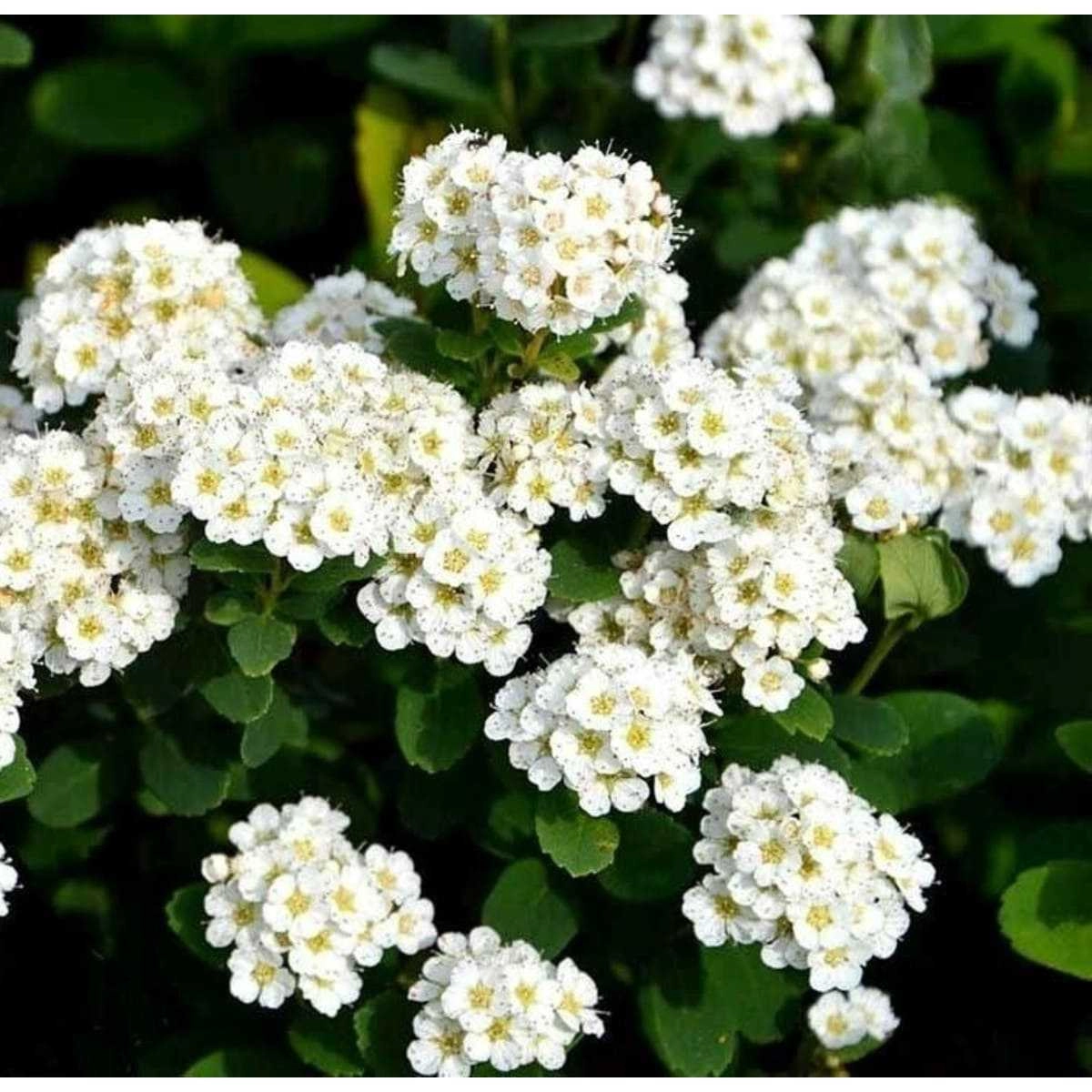 Обильноцветущий компактный кустарник с распростертой округлой кроной высотой до 0,6–1 м. Цветки белые, многочисленные; соцветия полностью закрывают листву.