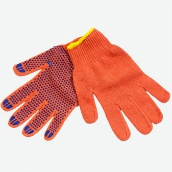 Перчатки из полиэстра (оранжевые) с ПВХ точкой