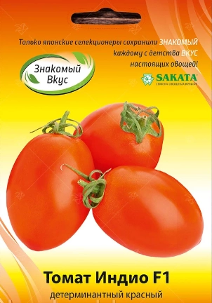 Это надежный, среднеспелый гибрид для открытого грунта с вытянутым, эллипсовидным плодом размером около 150 грамм. Плоды Индио плотные, лёжкие. Урожай всегда очень высокий. Гибрид хорошо развивается и формирует урожай, как при высоких, так и при пониженных температурах. У него превосходная устойчивость к ряду болезней, а именно к вертициллозному и фузариозному увяданиям, к серой листовой и бактериальной пятнистостям, к альтернариозному раку стебля. Tип детерминантный. Растение сильной мощности. Созревание среднее. Вес плодов 120-220 грамм. Плотность от хорошей до очень хорошей. Вкус хороший. Для свежего потребления и переработки.