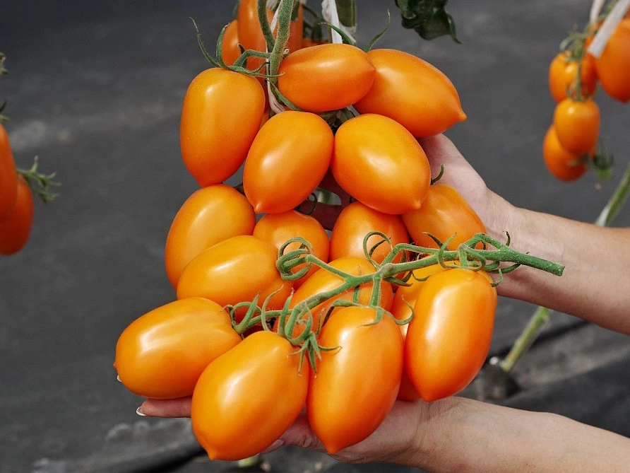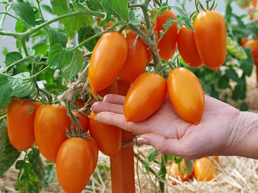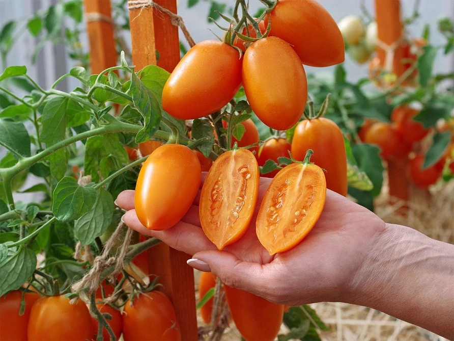 Раннеспелый высокоурожайный детерминантный гибрид томата для открытого и защищенного грунта. С момента всходов до начала созревания плодов проходит 90-100 дней. Растение крепкое, компактное, слабооблиственное, высотой до 70 см. Первое соцветие закладывается над 6-7 листом, последующие — через 1 лист. Кисти простые, ровные, содержащие по 5-7 высокотоварных плодов. Плоды цилиндрической формы с носиком, массой около 100 г, насыщенно-оранжевого цвета с высоким содержанием бета-каротина. Томаты обладают превосходными вкусовыми качествами, имеют приятный ярко выраженный аромат, отлично подойдут для цельноплодного консервирования и потребления в свежем виде. Гибрид высокоустойчив к вертициллезу (Va, Vd), кладоспориозу (Ff), бактериозу (Pst), и вирусу скручивания листа (TYLCV). Рекомендуемая плотность посадки — 3-4 растения/м², формировка в 3-4 стебля. Урожайность в условиях открытого грунта — свыше 18 кг/м², в условиях защищенного — до 25 кг/м².