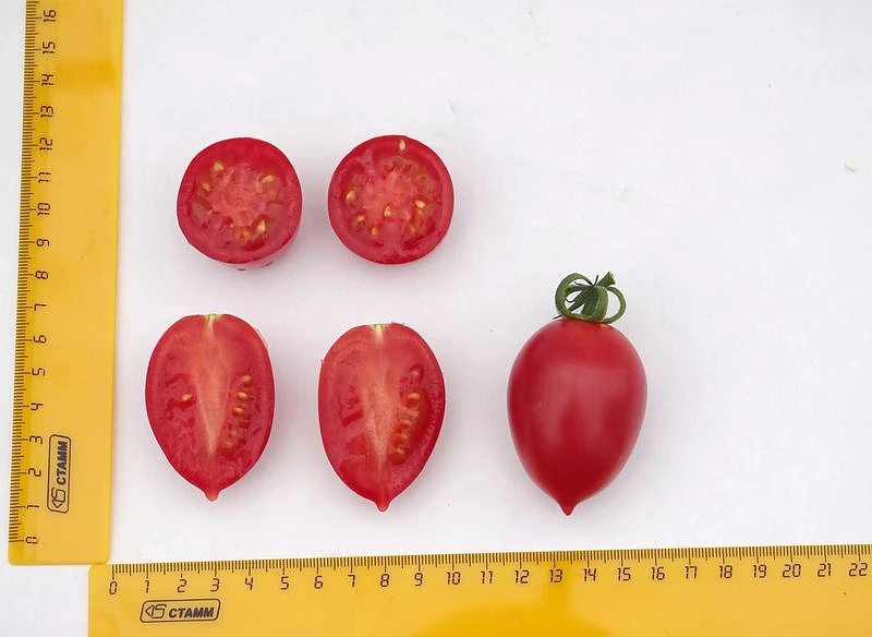 Гибрид раннеспелый, детерминантный. От всходов до сбора первого урожая 85-90 дней. Первое соцветие закладывается над 6 листом, последующие через 2 листа. Куст штамбовый, компактный, высотой 0,8-1,2 м. Плоды сливовидной формы, среднего размера, окраска плодов оранжево – алого цвета, массой 60-80 г. Томат имеет очень хороший вкус, сочный, душистый, сладкий, приятной консистенции. В технической спелости плоды хорошо идут в засолку, а в биологической зрелости плоды хороши в свежем виде и для приготовления соков. Гибрид отлично переносит недостаток света и резкие перепады температур. Благодаря своей раннеспелости, дружному созреванию плодов, гибрид успевает избежать фитофторы. Гибрид устойчив к вертициллёзному увяданию, фузариозу и альтернариозу. Плотность посадки 5 растений/м2. Урожайность 15 кг/м2.