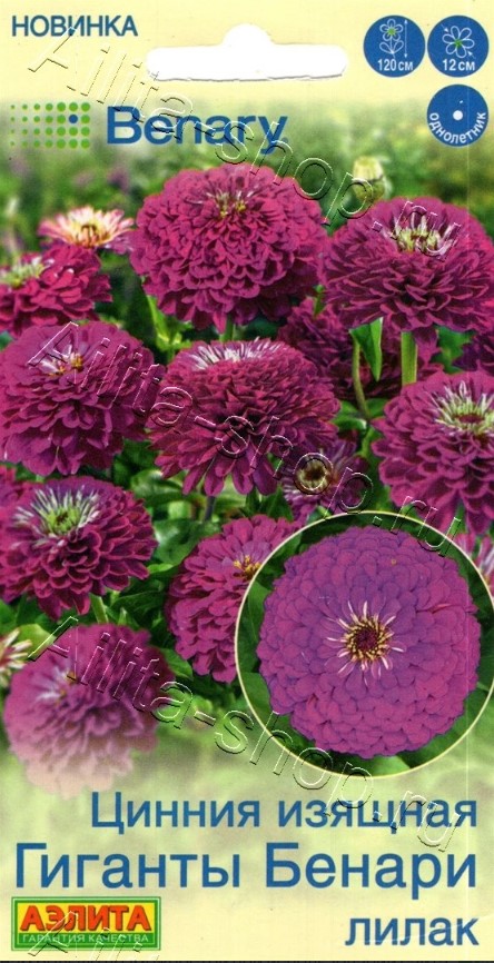 Цинния Гиганты Бенари лилак 7 шт (АЭЛИТА)