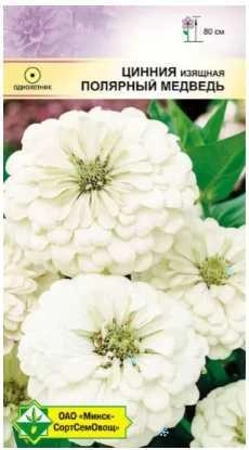 Привлекательное однолетнее растение высотой до 80 см. Соцветия-корзинки махровые, белые с легким зеленоватым оттенком, в диаметре 11-14 см, на длинном цветоносе. Сильные стебли не нуждаются в подвязке. Превосходный цветок для срезки. В букетах сохраняется 6-7 дней. Выращивают посевом семян в грунт под пленку в мае или на рассаду с начала апреля. Рассаду высаживают в конце мая на солнечное место.
