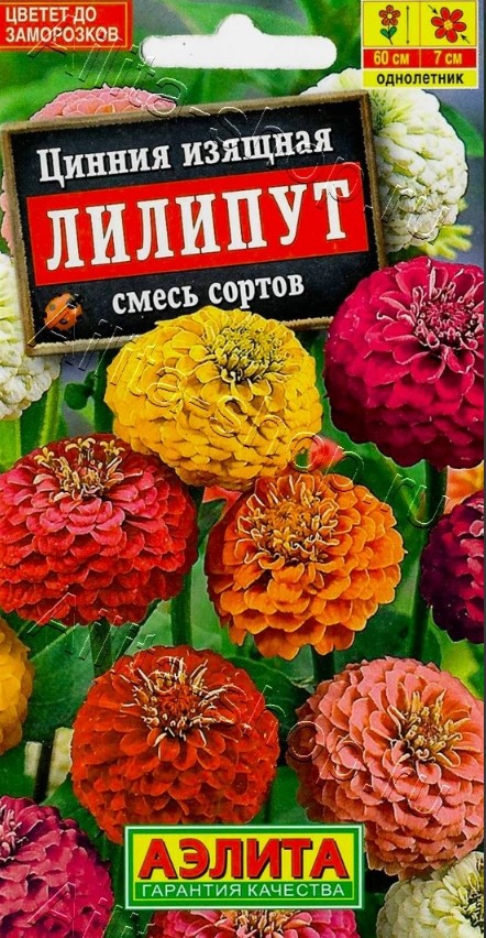 Специальная смесь низкорослых цинний с помпонным типом соцветий и широким спектром расцветок. Растения кустистые, крепкие, высотой около 50-60 см. Кусты обильно цветут до заморозков. Яркие шары густомахровых соцветий Ø 5-7 см привлекают массу бабочек. Красочная смесь идеально подходит для оформления цветников открытого грунта и балконных контейнеров. Смесь пригодна для срезки. Перед заморозками понравившийся экземпляр можно пересадить в подходящий горшок. Растение будет украшать подоконник еще 3-4 недели.