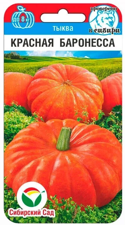 Среднеспелый (105-110 дней) сорт с плодами внушительных размеров. Неприхотлив в уходе, отлично хранится после сбора в зимний период. Привлекательные яркие оранжево-красные плоды достигают массы до 8 кг, легко режутся, обладают хорошим вкусом и приятным запахом без приторного «тыквенного аромата». Сорт предназначен для выращивания в открытом грунте, рекомендуется для употребления в кулинарии в летний и осенне-зимний период.