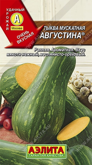 Ранний сорт столовой тыквы из группы мускатных. От всходов до созревания плодов 105-110 дней. Гитаровидные тыквины имеют густо-оранжевую мякоть, очень сладкую и ароматную. Мякоть насыщена ценными биологически активными соединениями, богата клетчаткой и пектином. Вкус нежный, маслянисто-ореховый. Средний вес плодов 4-5 кг. Самый полезный способ употребления – в сыром виде, в разнообразных салатах. Можно запекать, тушить, добавлять в каши, супы и выпечку – вкус термически обработанного продукта также не разочарует.