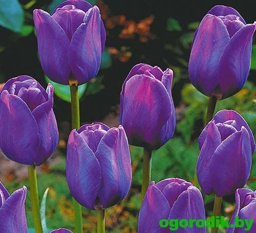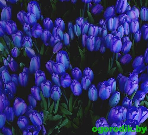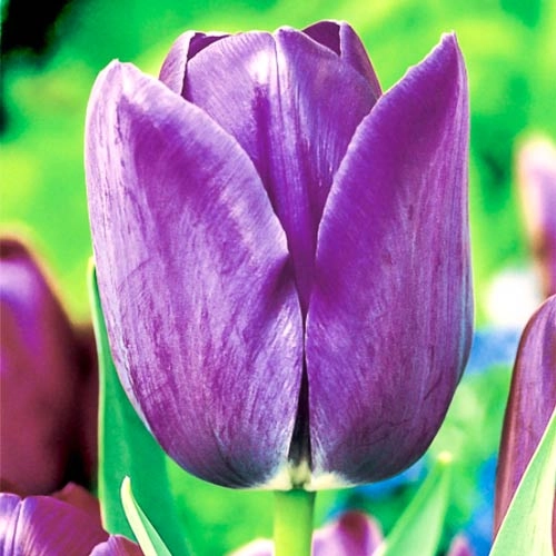 Тюльпан простой поздний BLUE AIMABLE имеет необычные, синие цветки. Простые поздние тюльпаны достаточно высокорослые ( 60-75 см высотой ) и мощные растения, цветки крупные, бокаловидной формы с широкими тупоконечными лепестками. Окраска простых поздних тюльпанов самая разнообразная от белой до черной, много двухцветных сортов. Цветоносы крепкие, сильные, листья насыщенно зеленого цвета. Одна из самых распространенных групп тюльпанов для выращивания на срезку, выгонку и для городского озеленения. Прекрасно подходят для выращивания в саду, на клумбах и в пейзажных посадках.