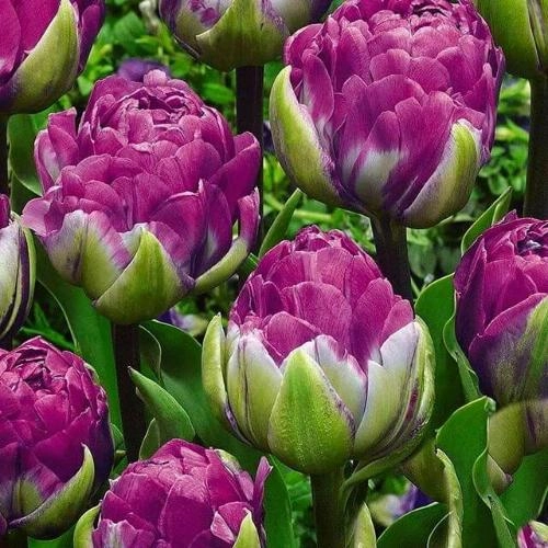 Удивительно пышный махровый тюльпан Wow Blue с невероятной сине-сиреневой окраской по виду больше похож на пион из-за большого количества лепестков. Идеален для садовых клумб и для создания букетов. После среза будет радовать своей неотразимой красотой еще около полутора недель без потери свежести.
