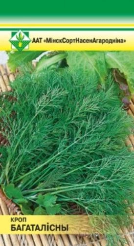 Среднеспелый сорт. Облиственность очень высокая. Листья крупные, зеленые, со слабым восковым налетом. Зелень нежная, сочная, с высокой ароматичностью. Период от всходов . Продолжительное время сохраняет фазу уборки на зелень. Используется в свежем виде, для консервирования, сушки, замораживания. За сезон высевают 3-4 раза, возможен посев под зиму.