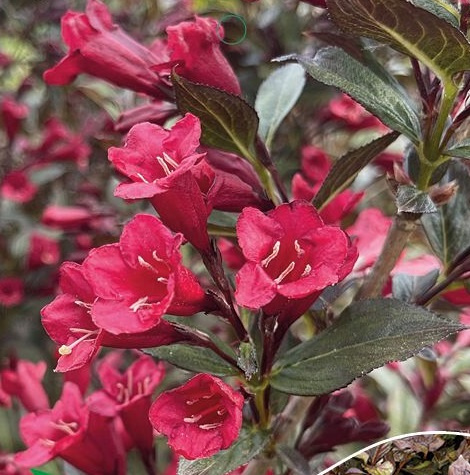 Вейгела Блэк Руби - красивоцветущий декоративно-лиственный кустарник. Цветет ярко и обильно. Если после цветения провести обрезку побегов, то во второй половине лета Вейгела порадует Вас повторным ярким цветением, которое может продолжаться до первых заморозков. Вейгела Блэк Руби имеет хорошую декоративность листьев и обильное цветение как на солнечных местах, так и в полутени.