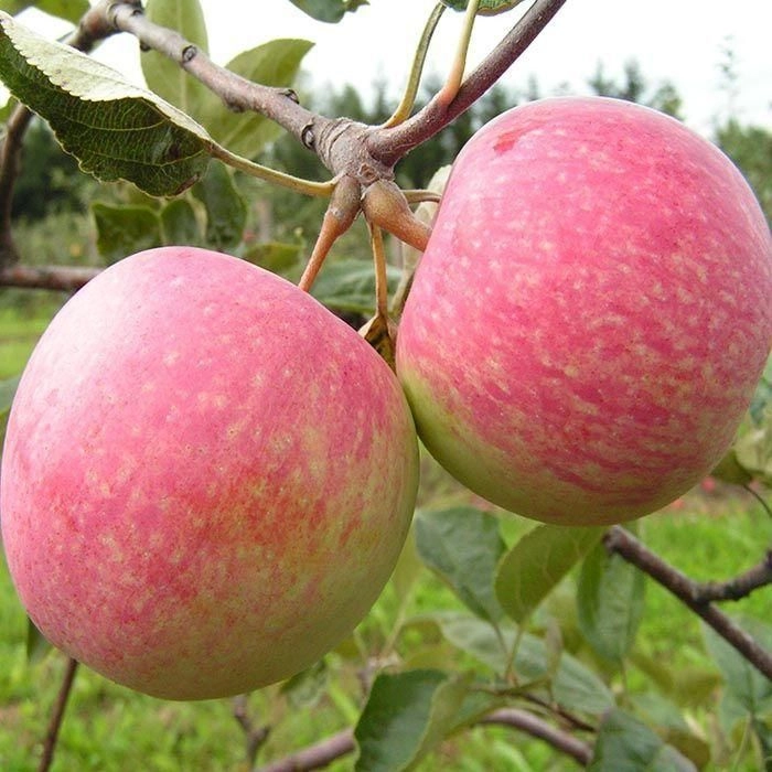 Яблоня этого сорта средней высоты (4–6 м), крона компактная, округлая, средне загущена. Цветение дерева начинается во второй половине мая. Бутоны имеют розоватый окрас, по мере распускания становятся белыми с легким розоватым оттенком. Для сорта характерен смешанный тип плодоношения (плоды формируются на всех ветках). Эти яблони не являются самоплодными – для перекрестного опыления им нужны другие сорта с таким же, как у них сроком цветения.Яблоки этого сорта средней величины (100–180 г), имеют правильную округлую форму, по высоте немного приплюснутые, без ребристости. Кожура гладкая, плотная, у плодоножки оржавленная, покрыта восковым налетом. Под кожурой заметны крупные подкожные точки. Яблоки долго сохраняют свой товарный вид, прекрасно транспортируются, но быстро осыпаются с яблони, поэтому снимать урожай следует вовремя.