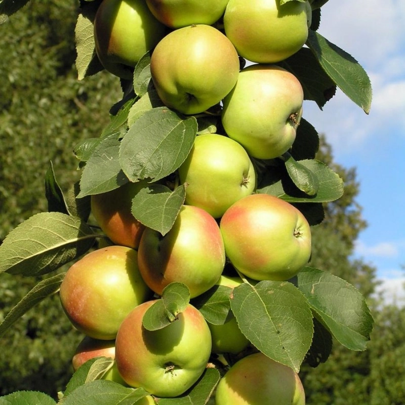 Плотные сочные плоды среднего размера (до ста пятидесяти граммов) с кисло- сладким вкусом поспевают в сентябре, а хранятся почти до середины зимы. Достоинством этого сорта является его скороплодность (уже на второй год), отличная устойчивость к болезням и высокая морозостойкость. И, конечно его ценность - в компактности деревьев - при высоте два - два с половиной метра окружность кроны не превысит метра и значит такому удачному сорту яблони найдется место даже в самом маленьком саду. Этот сорт идеально подходит для сверхуплотненных посадок и урожаи получают такие богатые, что этот сорт попал даже в Книгу рекордов Гиннеса - за самые высокие урожаи яблок с одного гектара.
