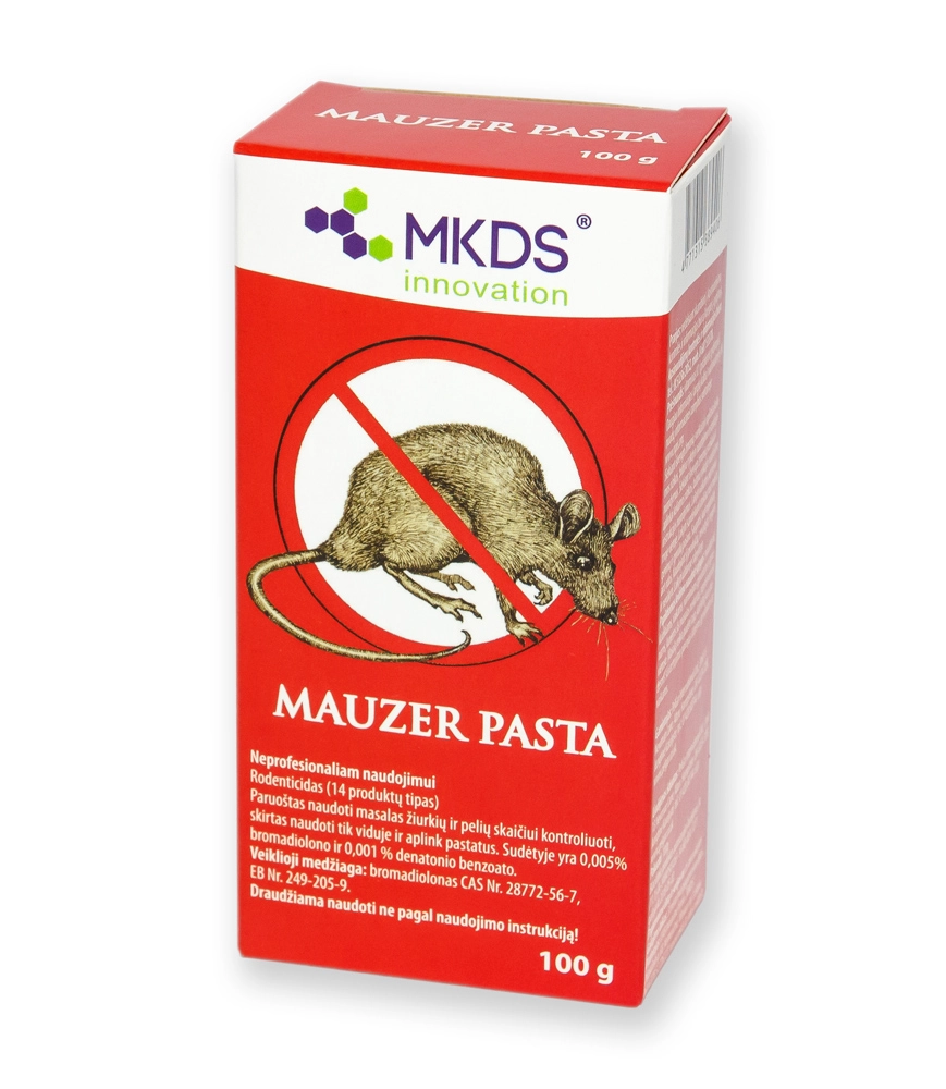 Mauzer Pasta представляет собой готовую к использованию приманку для контроля за численностью крыс и мышей. Предназначена для использования внутри и вблизи зданий