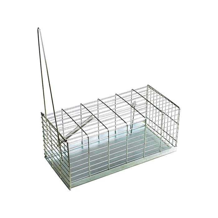 Мышеловка в виде металлической клетки, длина 30 см. Механизм захлопывания дверцы связан системой подачи приманки.