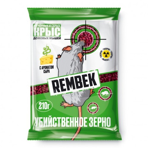 Рембек убийственное зерно - 100% уничтожение даже при минимальном попадании дозы; не вызывает привыкания; натуральное зерно в основе приманки обеспечивает отличную поедаемость грызунами; эффективно на все помещение.